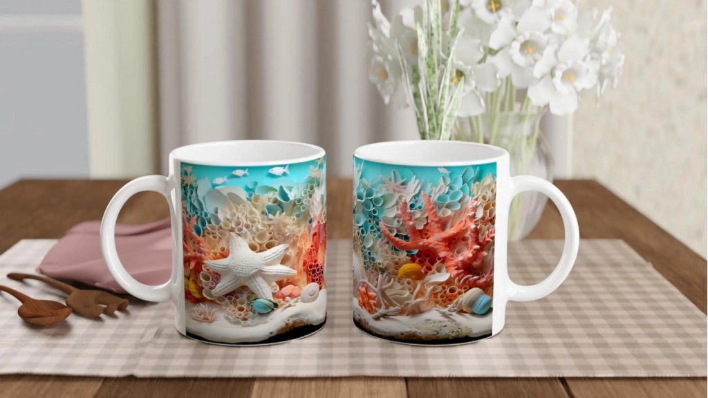 Mercan Ormanında Deniz Yıldızı Kupa Bardak, hem doğa severlere hem de estetik tasarımları sevenlere ilham veren eşsiz bir kupa seçeneğidir.