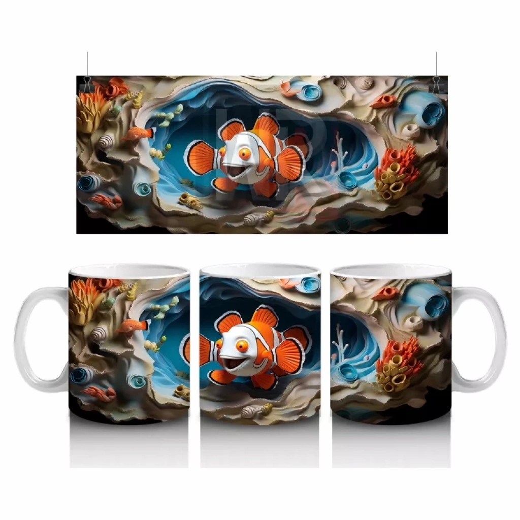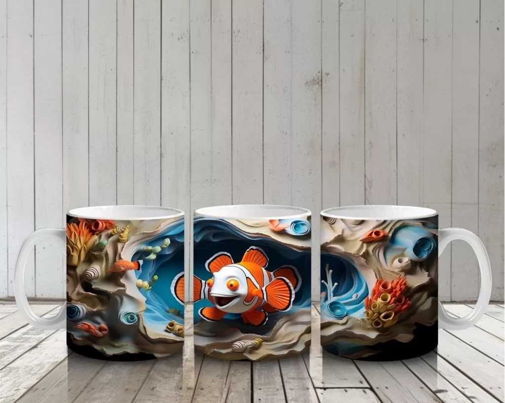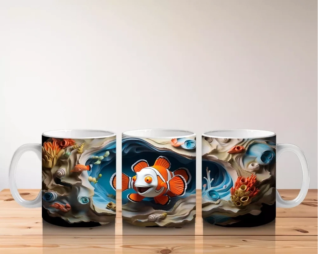 Canlı renkleriyle mercan resiflerinde süzülen palyaço balığı, bu kupa tasarımını enerjik ve eğlenceli hale getiriyor. Deniz altı dünyasının güzelliğini masanıza taşımak için ideal bir parça.
