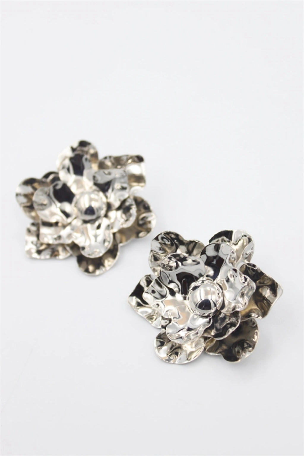 Metal Çiçek Küpe - Gümüş