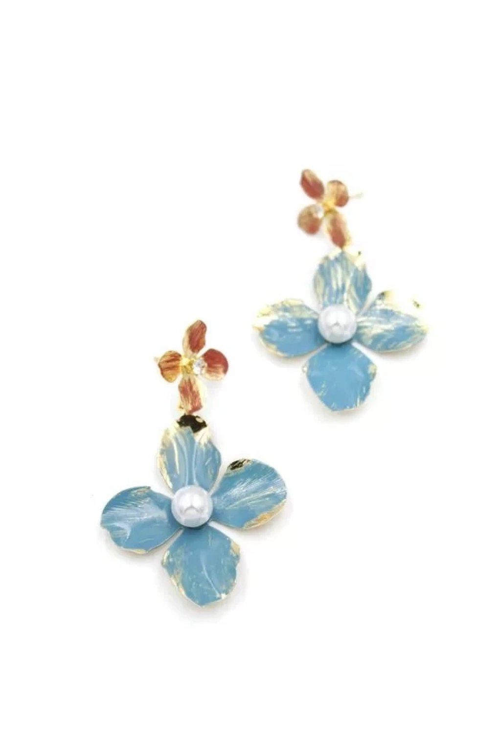 Metal Çiçek Küpe - Turkuaz