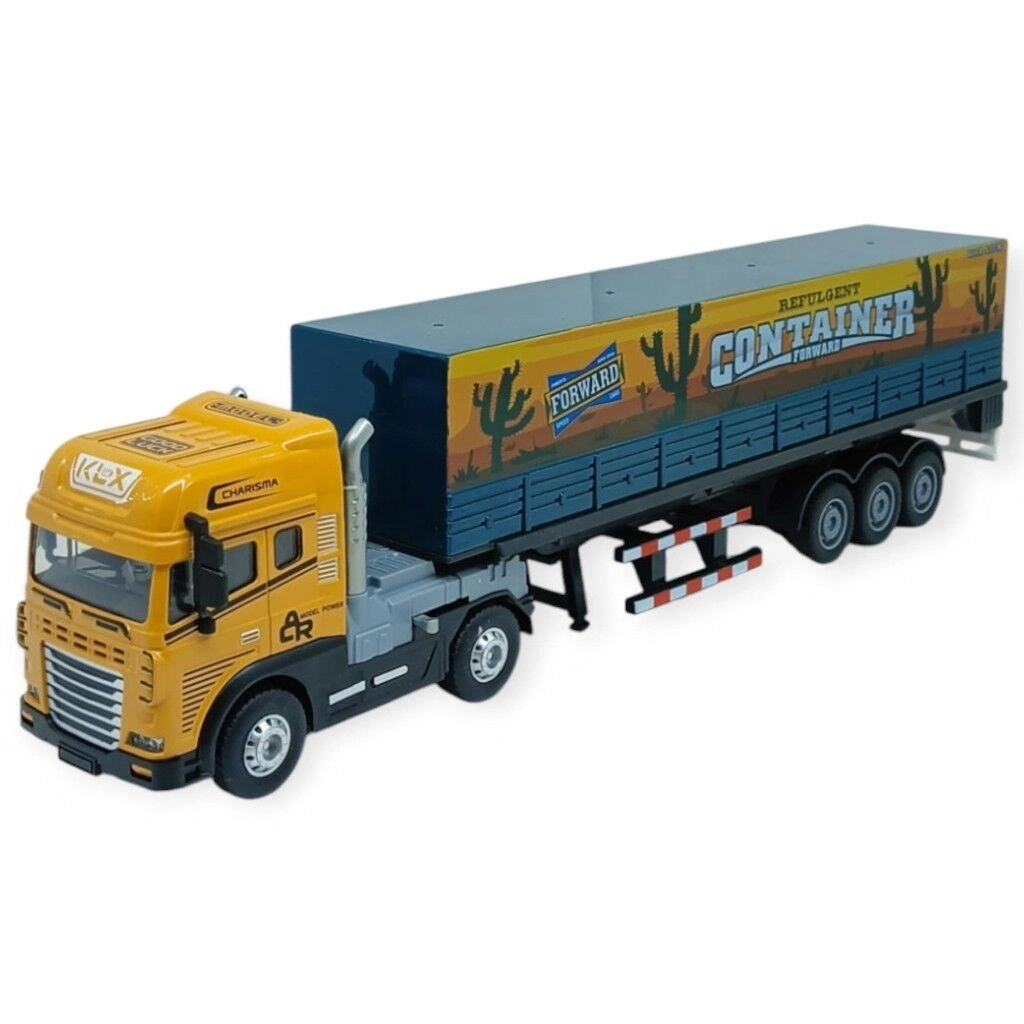 Metal Tır 1:24 - Sesli Işıklı Konteyner Taşıyıcı Tır 39 cm - Sarı