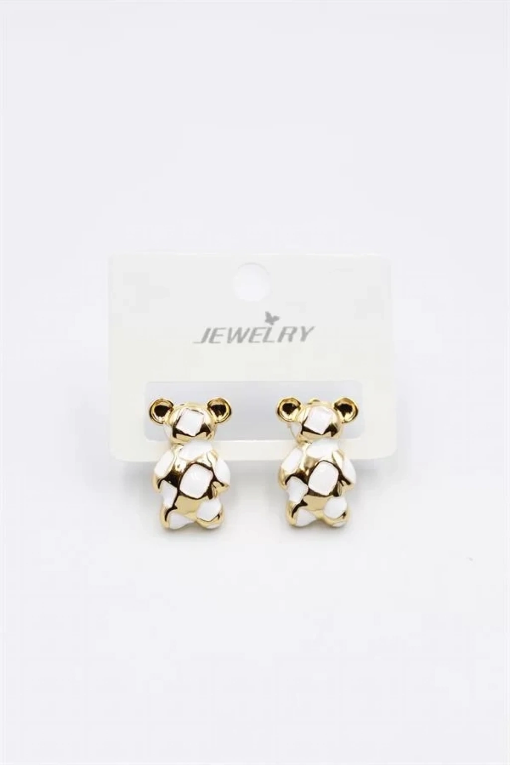 Mineli Ayıcık Küpe - Beyaz