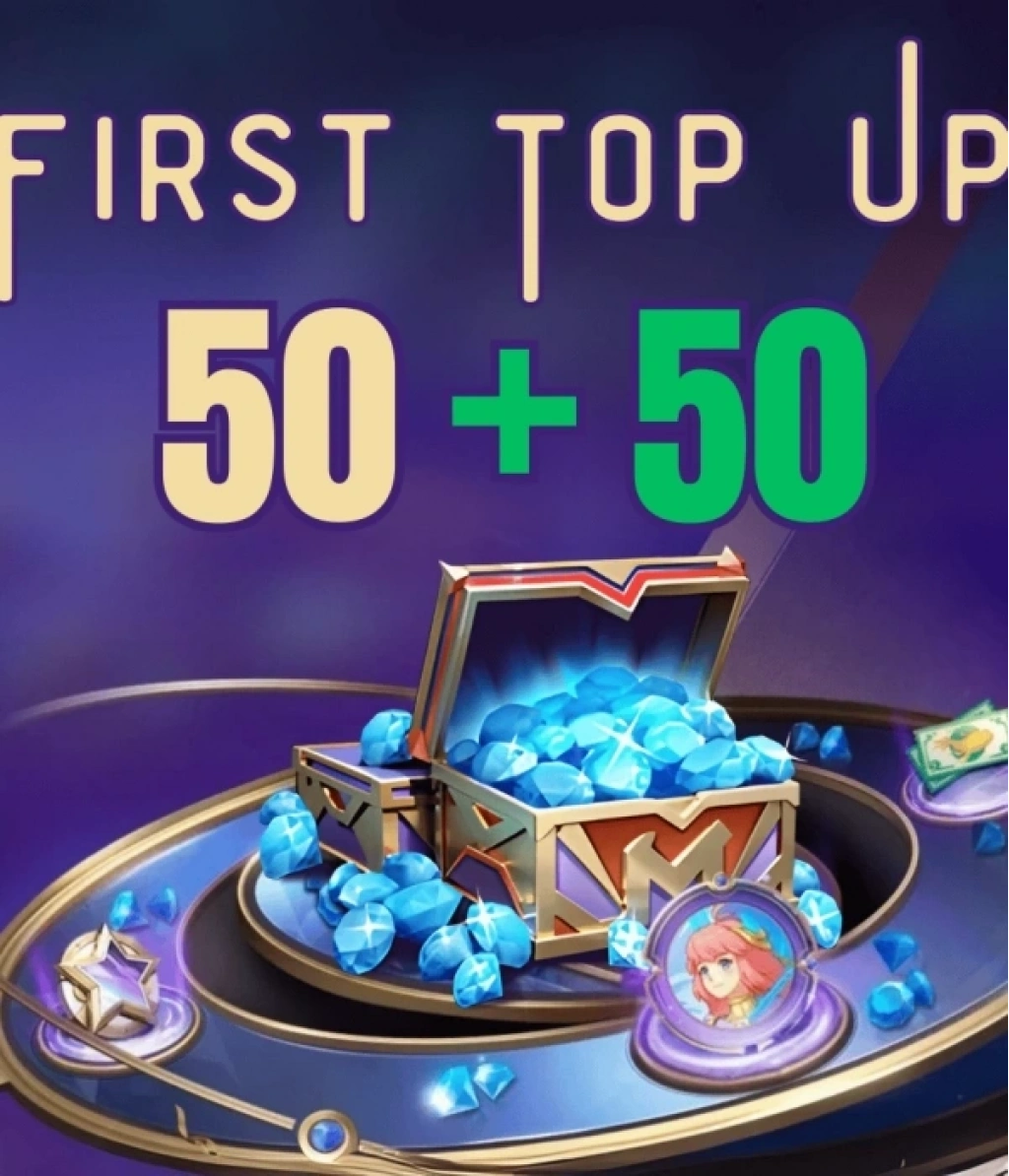 First Top Up 50 +50 Almaz – o‘yin ichida birinchi marta to‘lov qilayotgan o‘yinchilar uchun maxsus paketdir. Ushbu paket yordamida 50 olmos sotib olganingizda, qo‘shimcha yana 50 olmos sovg‘a qilinadi va jami 100 olmosga ega bo‘lasiz.