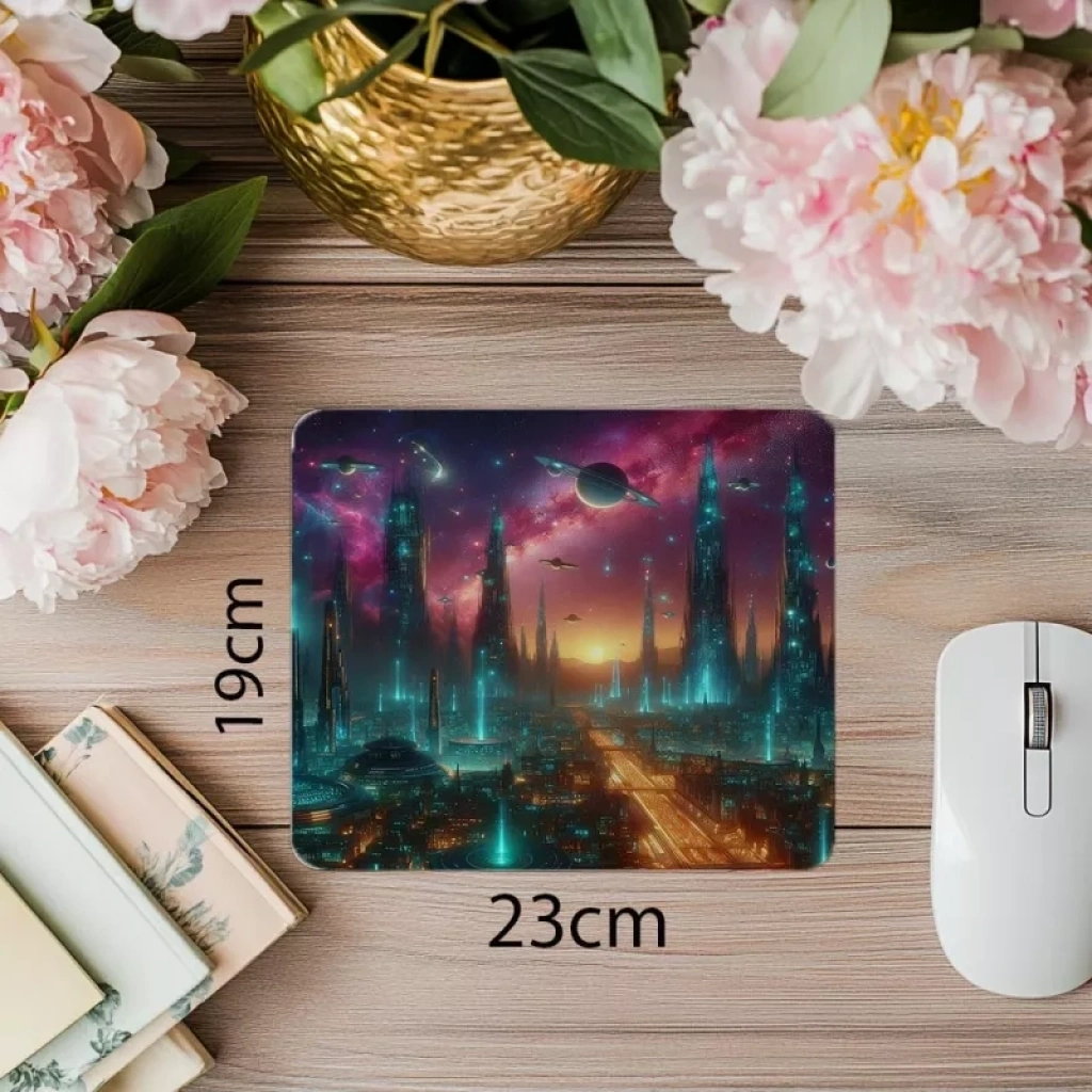Nebula Arka Planlı Fütüristik Şehir Mouse Pad - 19x23 cm 2 mm Dikdörtgen İthal Baskılı Mouse Pad