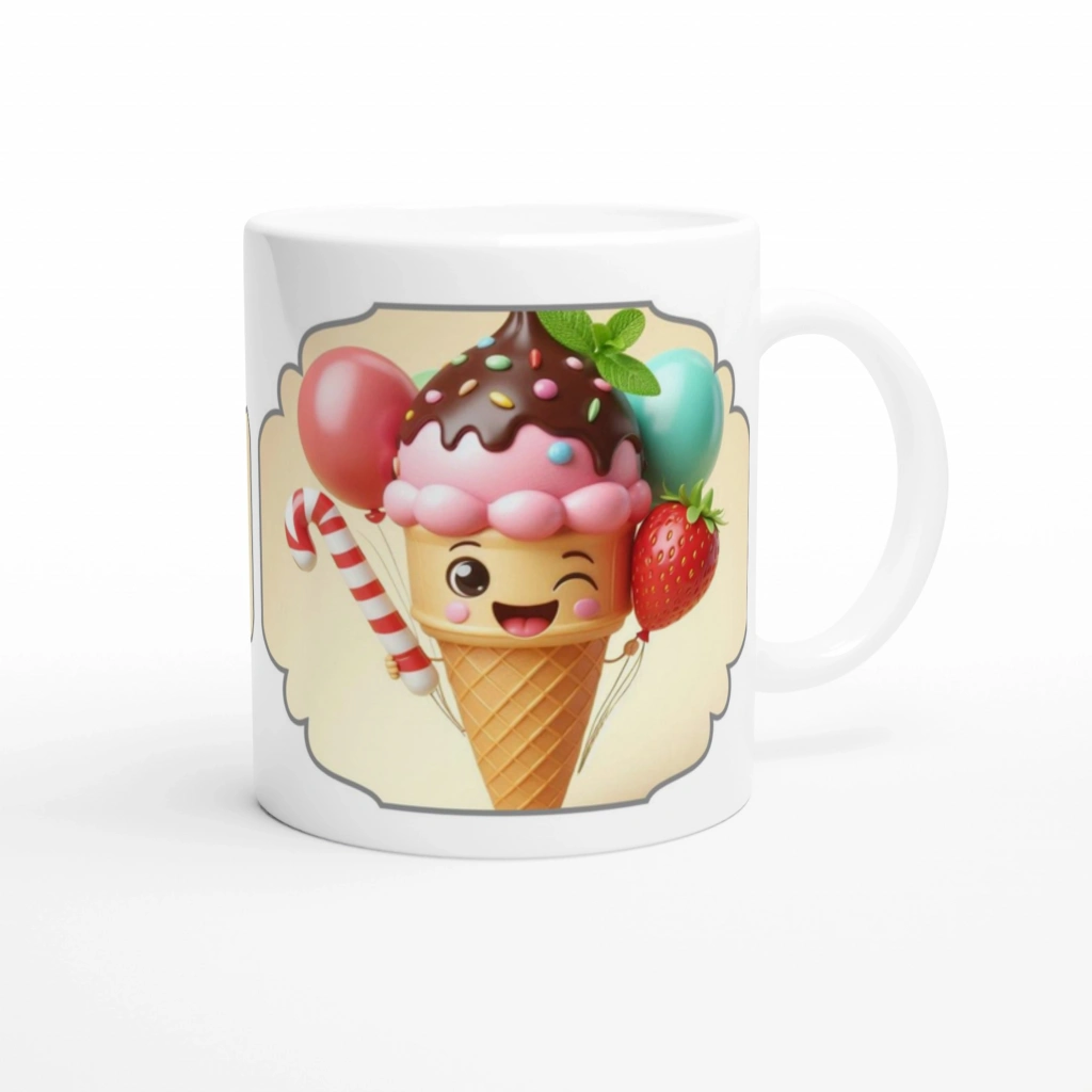 Bu çocuklara özel kupa, gülümseyen dondurma külahı ve neşeli balonlarla çocukların yüzünü güldürüyor.
