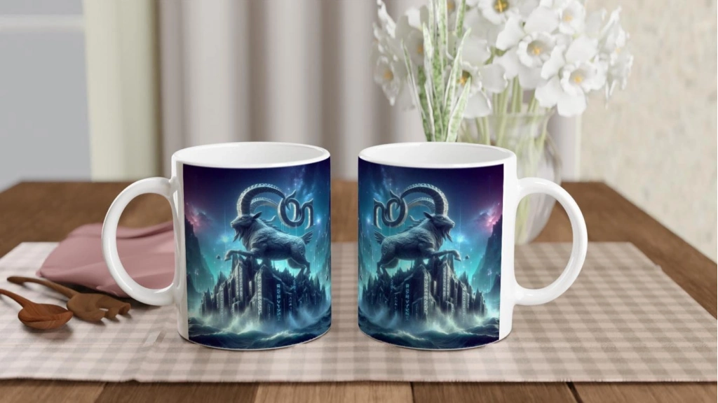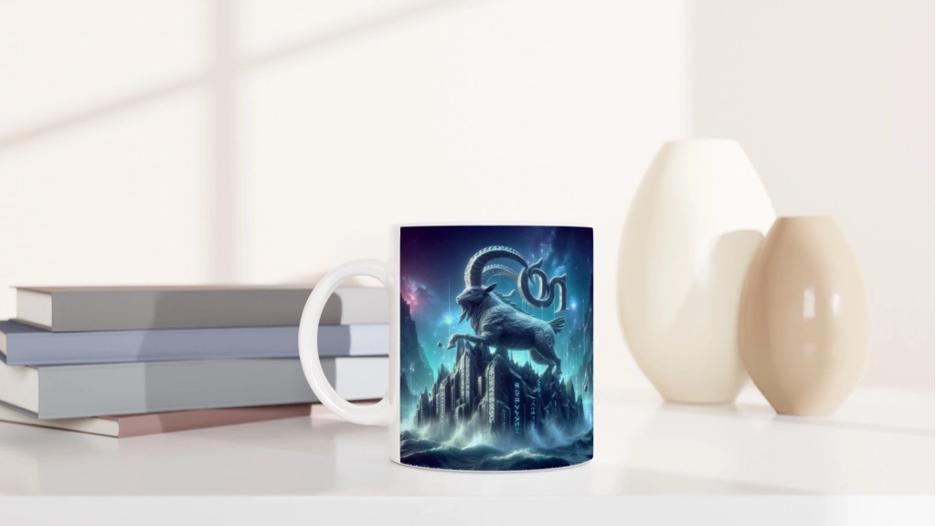 Oğlak’ın disiplinli ve ciddi tavrını, astral okyanusun ağırbaşlı ve gizemli havasıyla buluşturan bu özel tasarım; kahve molalarına derinlik katar.