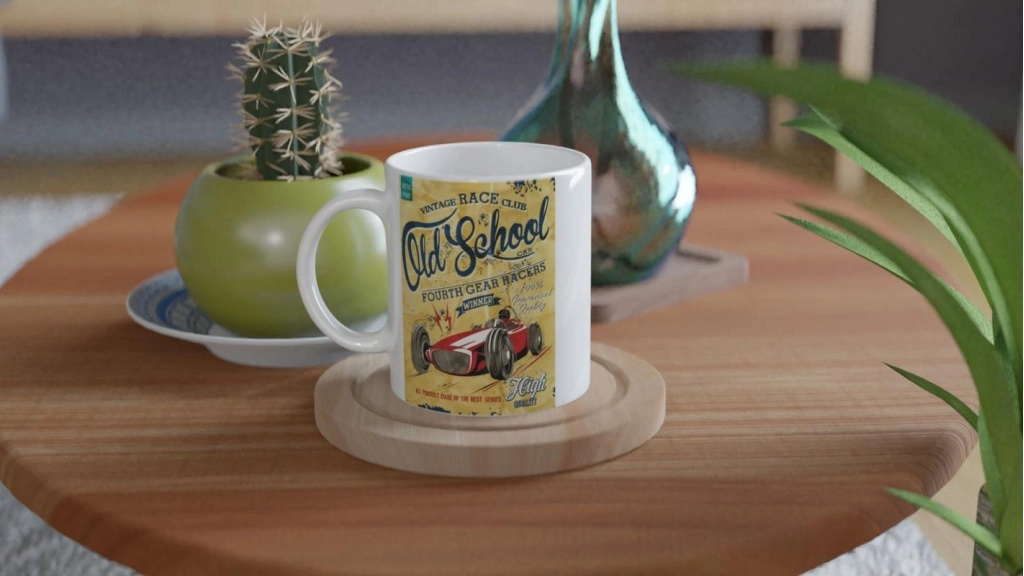Eski tarz yarış arabası ve dinamik yazı stiliyle tasarlanmış bu kupa bardak, nostalji sevenler için mükemmel bir hediye alternatifi.