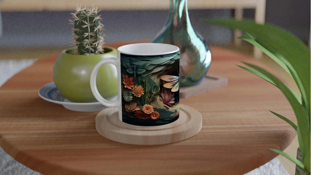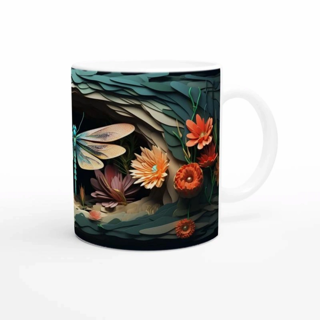 Orman Çiçekleri Arasında Turkuaz Yusufçuk Temalı Baskılı Kupa Bardak, rengarenk çiçeklerle bezeli bir doğa sahnesinde yer alan ince işçilikli yusufçuk illüstrasyonuyla görsel bir şölen sunar. Doğadan ilham alan estetik tasarımıyla dikkat çeker.