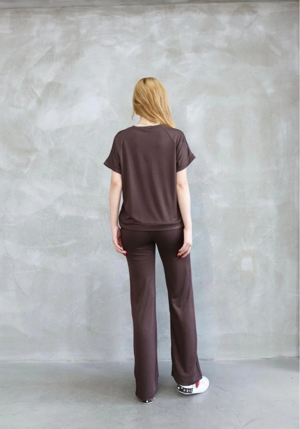 Osy Modal Yumuşak dokulu Kumaş Bisiklet Yaka Kısa Kollu Takım - Kahverengi