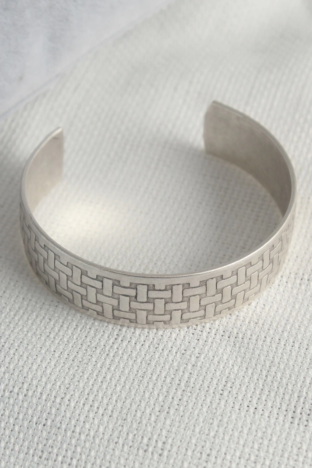 Otantik Gümüş Renk Motif İşleme Detay Plaka Erkek Bileklik