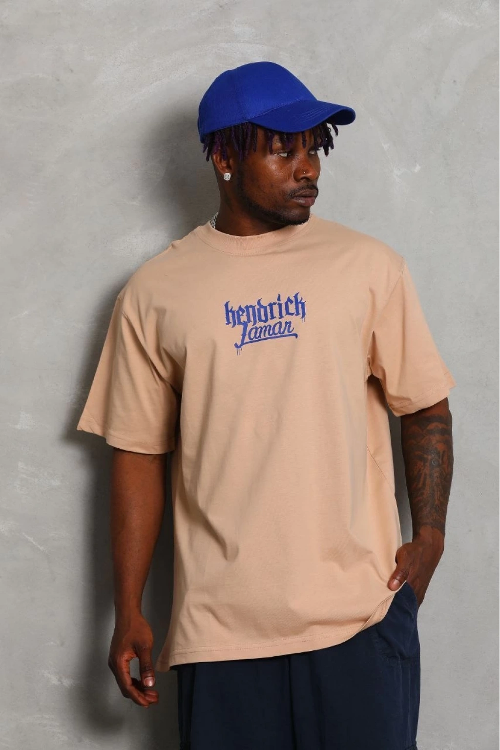 Oversize Baskılı Bisiklet Yaka T-Shirt - Bej -