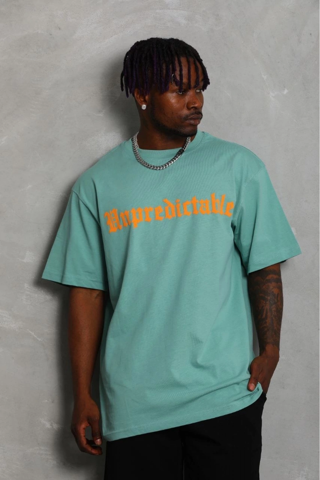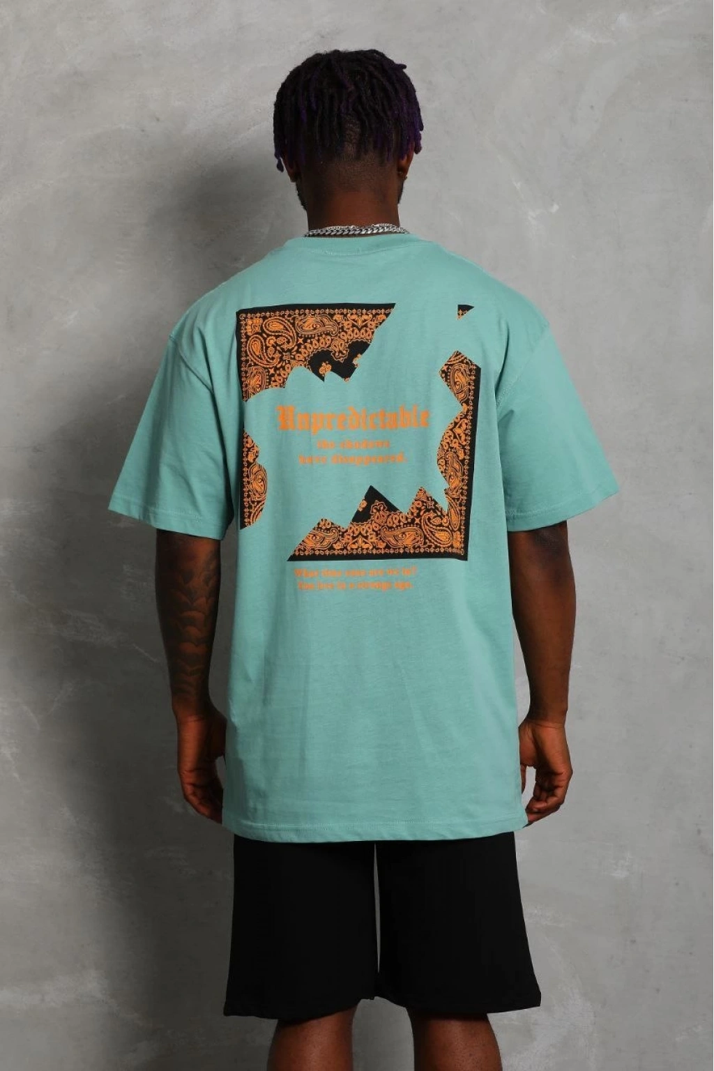 Oversize Baskılı Bisiklet Yaka T-Shirt - Mint Yeşili