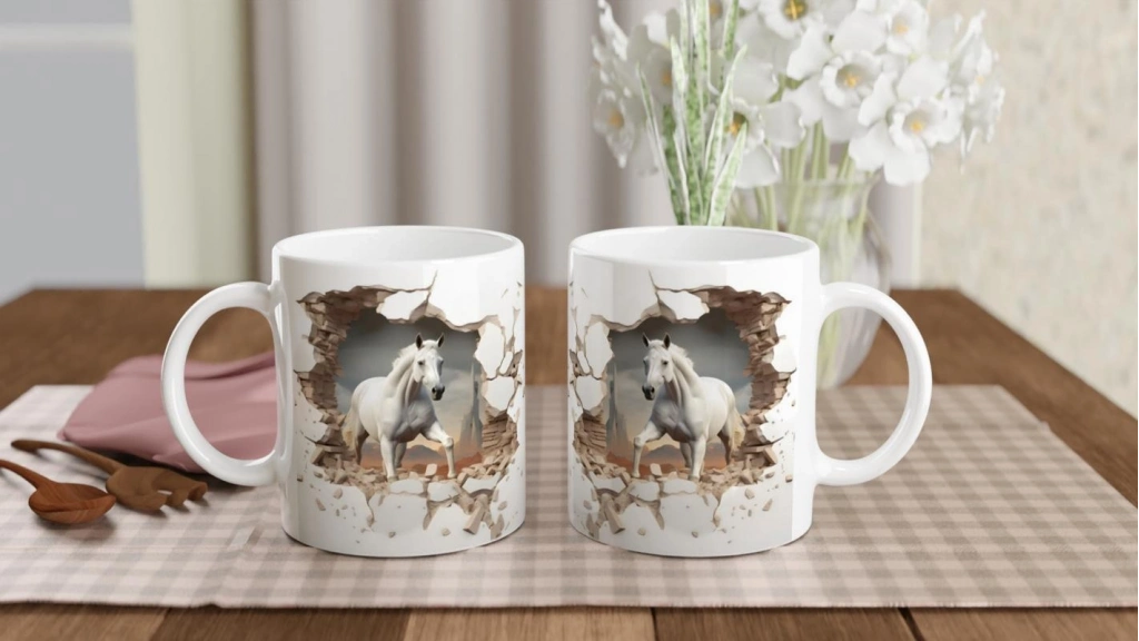 Özgürlüğe Koşan Beyaz At Baskılı Kupa Bardak