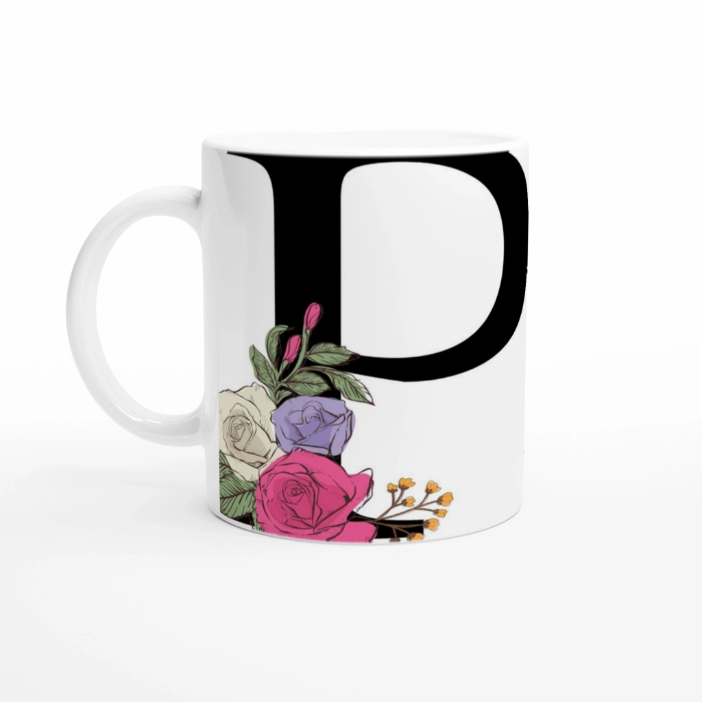 P Harfi Çiçek Süslemeli Harfli Kupa Bardak