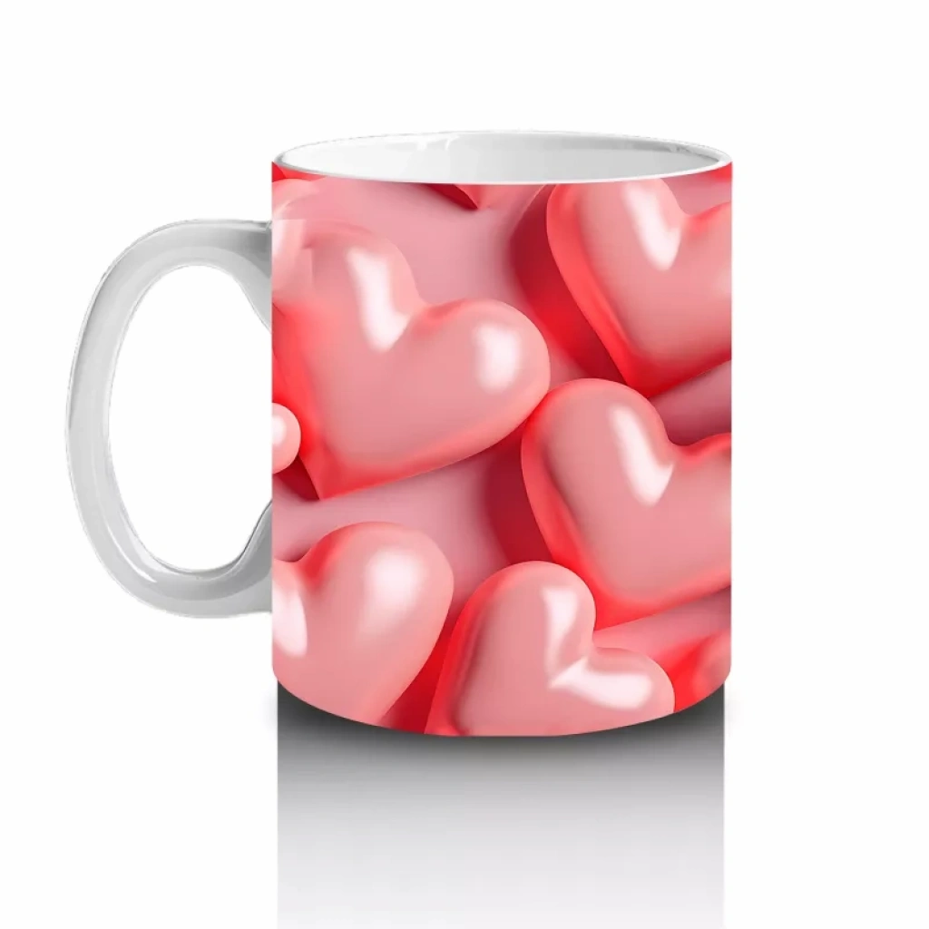 Parlak Pembe Kalplerle Süslenmiş Pembe Kelebek – Baskılı Kahve Kupası