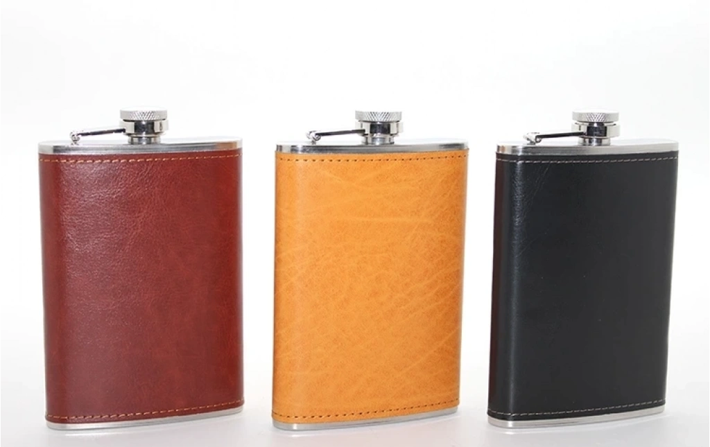 Paslanmaz Çelik Tekli 9 Oz Derili Matara Alk2662