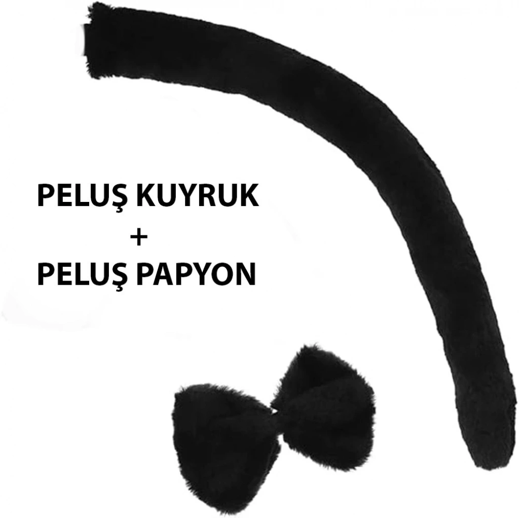 Peluş Siyah Renk Kuyruk Ve Papyon Yetişkin Çocuk Uyumlu