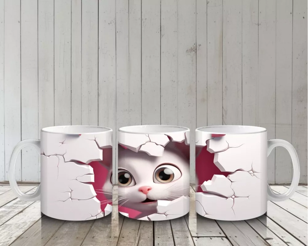 Pembe çatlak efektinden dışarı bakan bu tatlı kedi yavrusu, sevgi dolu bir tebessümle gününüze neşe katacak. ?? Özellikle hayvan severlere hitap eden yumuşak bir tasarım.