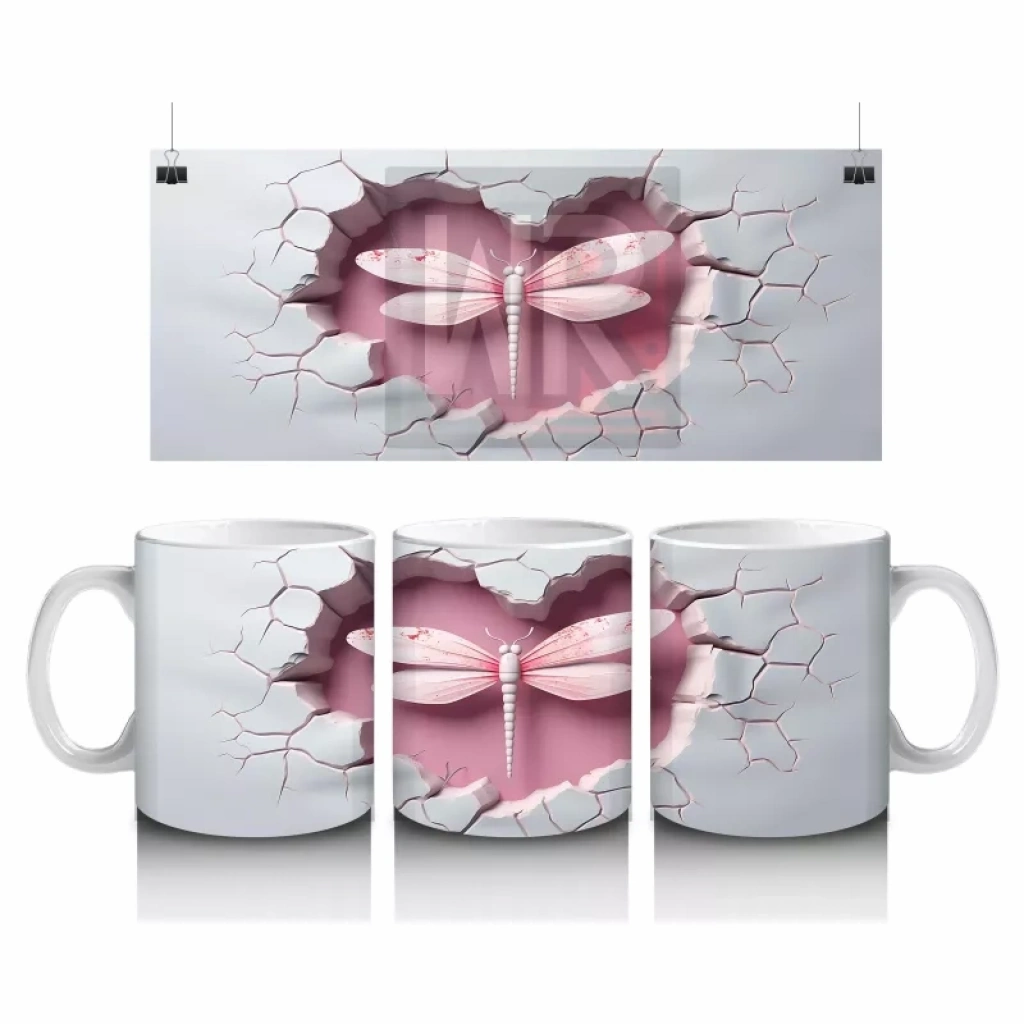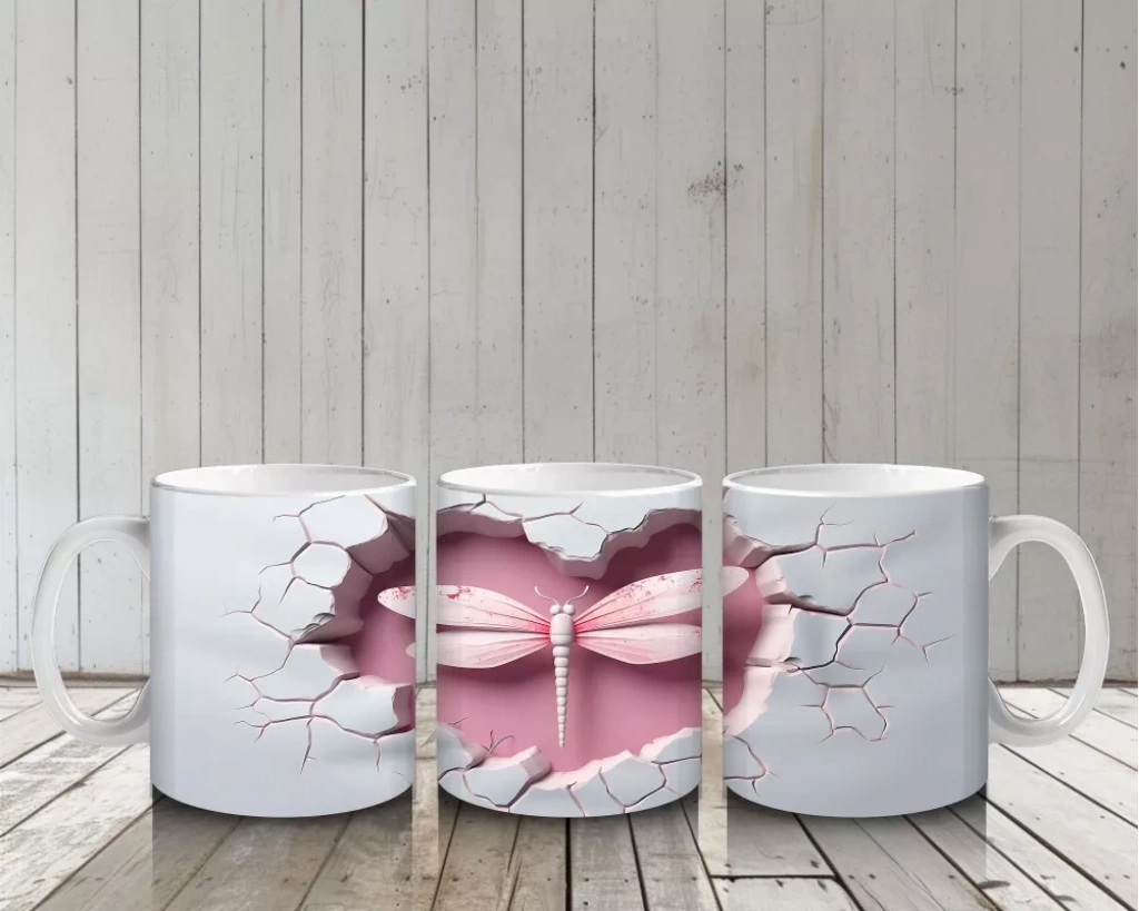 Pembe Çatlakta Simetrik Yusufçuk Deseni – Baskılı Kahve Kupası