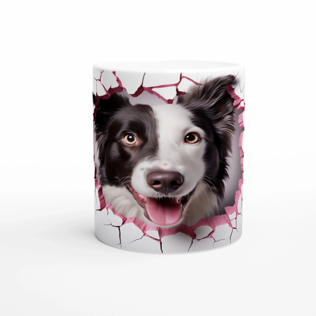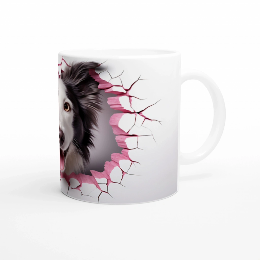 Pembe Çatlaktan Bakan Border Collie Temalı Baskılı Kupa Bardak