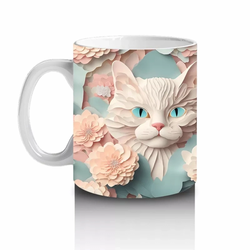 Pembe çiçeklerle süslenmiş bu sevimli kedi yavruları, sıcaklığın ve masumiyetin simgesi. ?? Her yudumda yüreğinizi ısıtacak bir kupa.