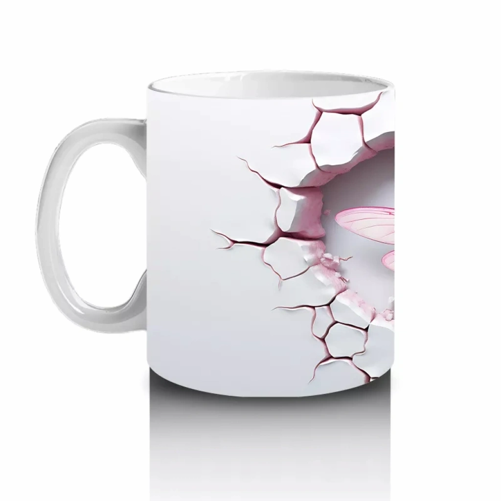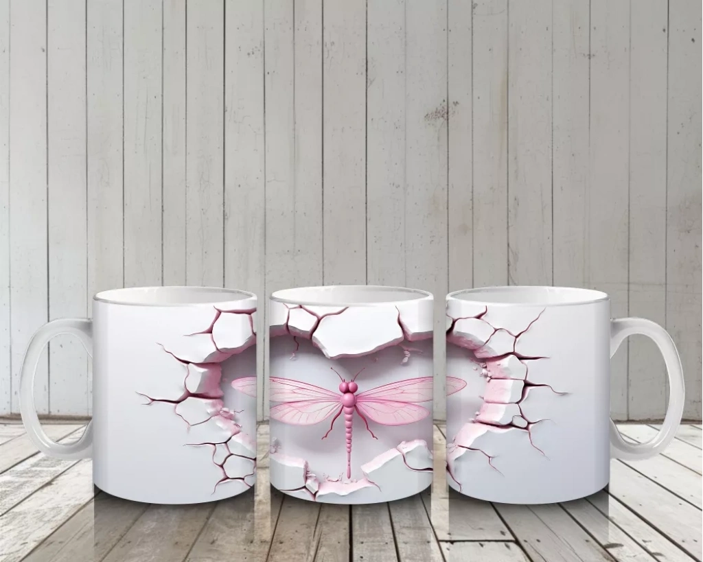 Pembe Damarlı Kalp Desenli Çift Yusufçuk – Baskılı Kahve Kupası