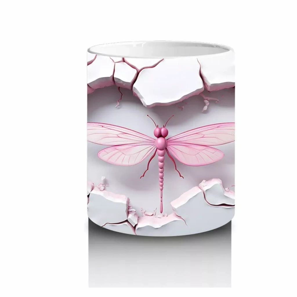 Pembe damar dokulu kalp deseni üzerinde süzülen iki yusufçuk, aşkı ve uyumu simgeliyor. Anlamlı bir hediye arayanlar için hem estetik hem duygusal bir tasarım.