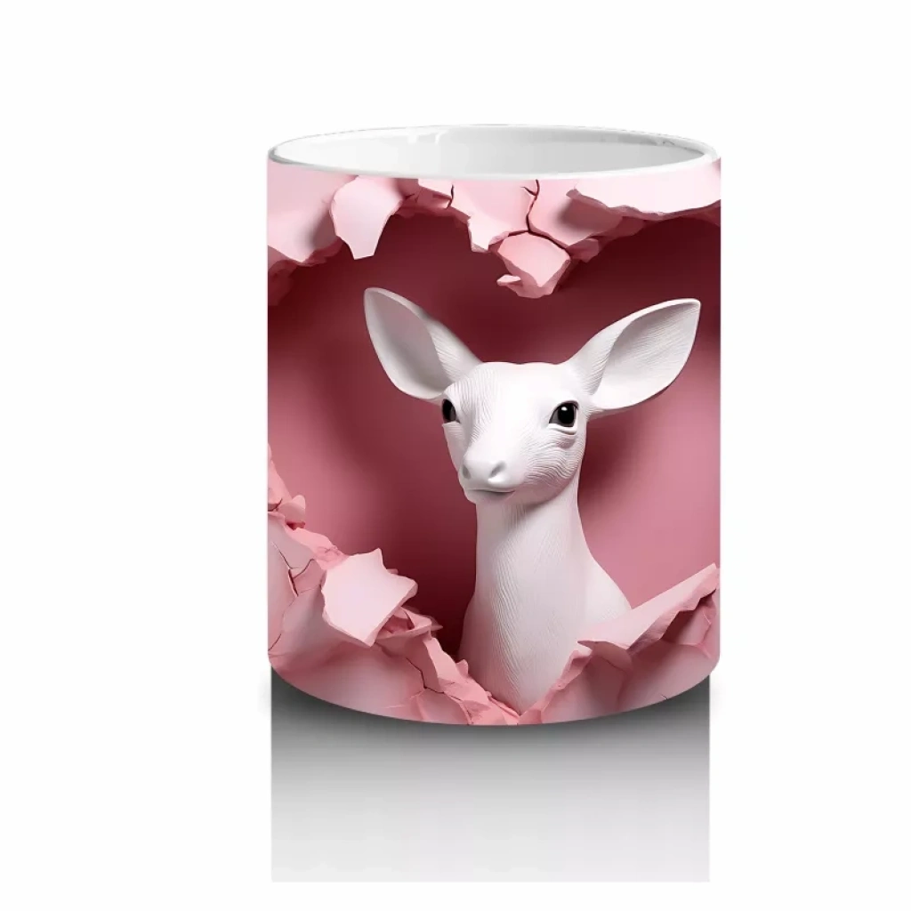Yumuşak pembe dokular arasında beliren bu sevimli ceylan, doğanın naif güzelliğini yansıtıyor. Doğal ve huzur veren tasarımlardan hoşlananlar için sıcak bir seçim.