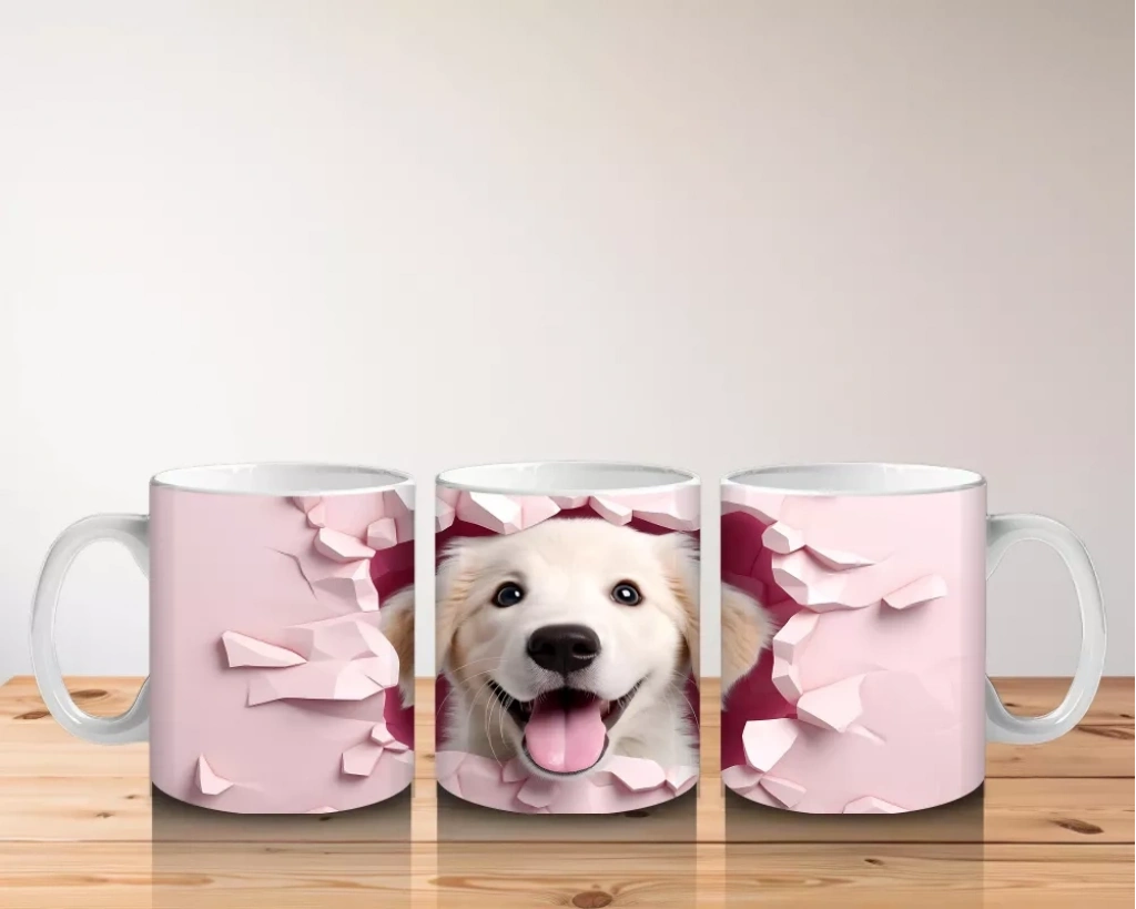 Pembe Kalp Duvarı Delen Sarı Köpek – Baskılı Kahve Kupası