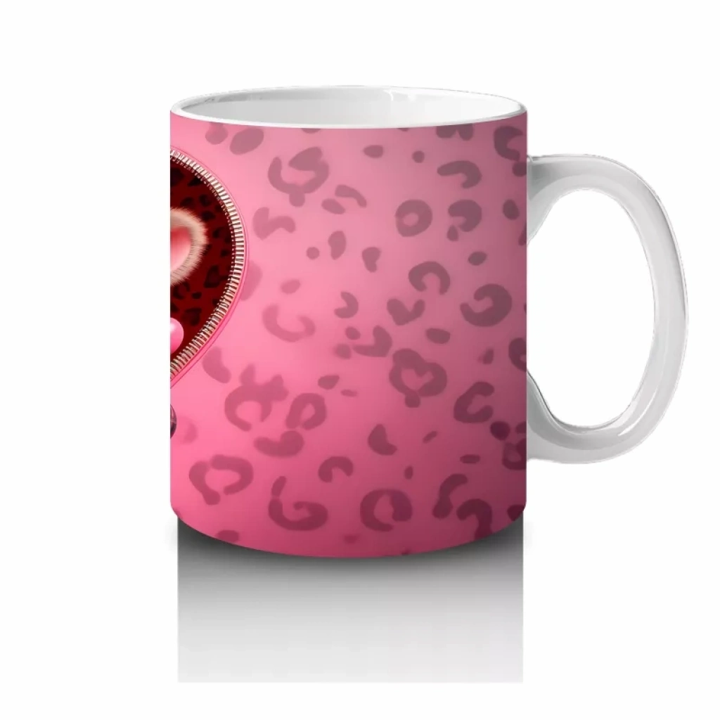 Pembe Kalp İçinde Sevimli Boğa Figürü – Baskılı Kahve Kupası