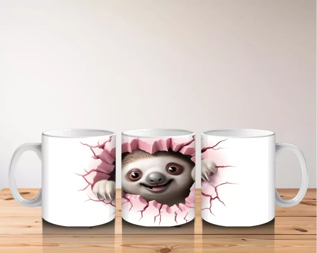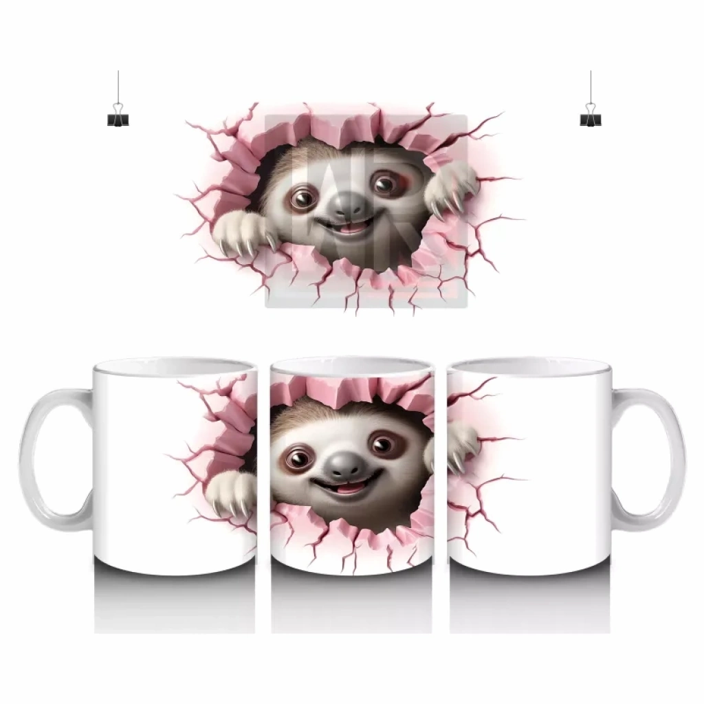 Pembe kalplerin arasında sakince bakan bu sevimli tembel hayvan, huzur ve sevecenliği bir araya getiriyor. Yumuşak çizgileriyle iç ısıtan bu tasarım, pozitif enerjiyle dolu bir kupa sunuyor.