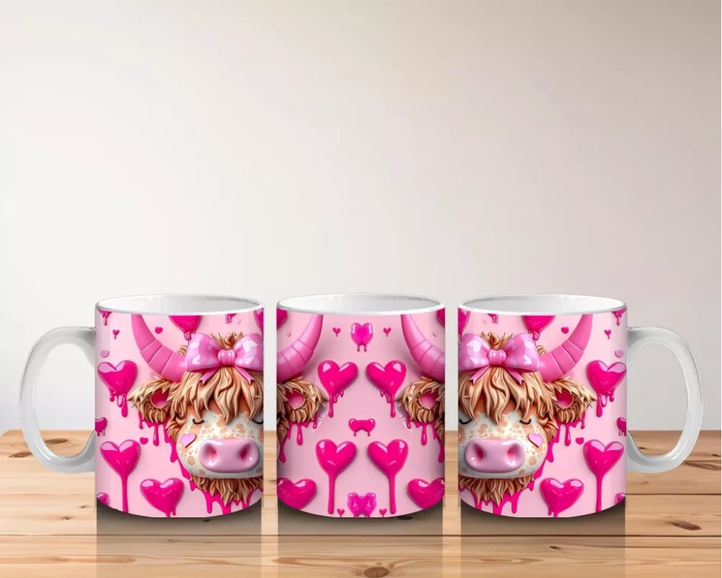 Pembe Kalpli Arka Planda Aşık Boğa Çifti – Baskılı Kahve Kupası