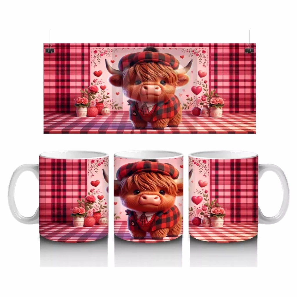 Pembe kalplerle süslenmiş sahnede şapkasıyla duran bu boğa, hem komik hem romantik bir görüntü sunuyor. Mizahi dokunuşlarla bezenmiş eğlenceli ve dikkat çekici bir kupa alternatifi.