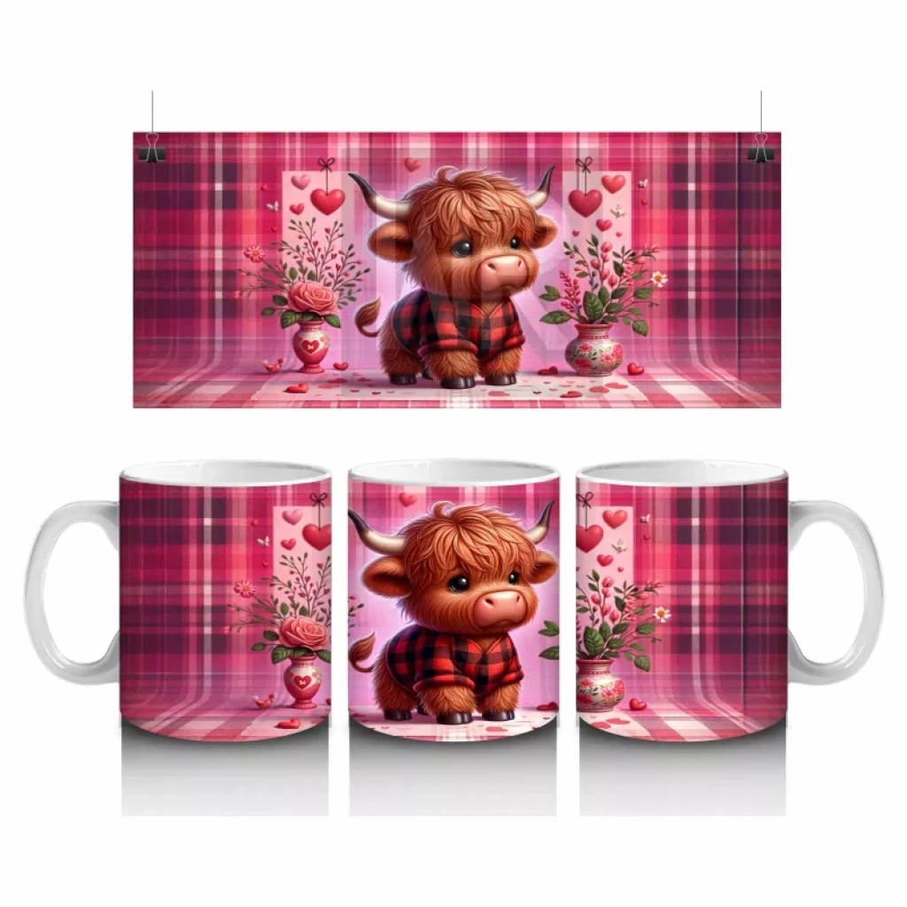Pembe Kare Desen Üzerinde Sevimli Öküz – Baskılı Kahve Kupası
