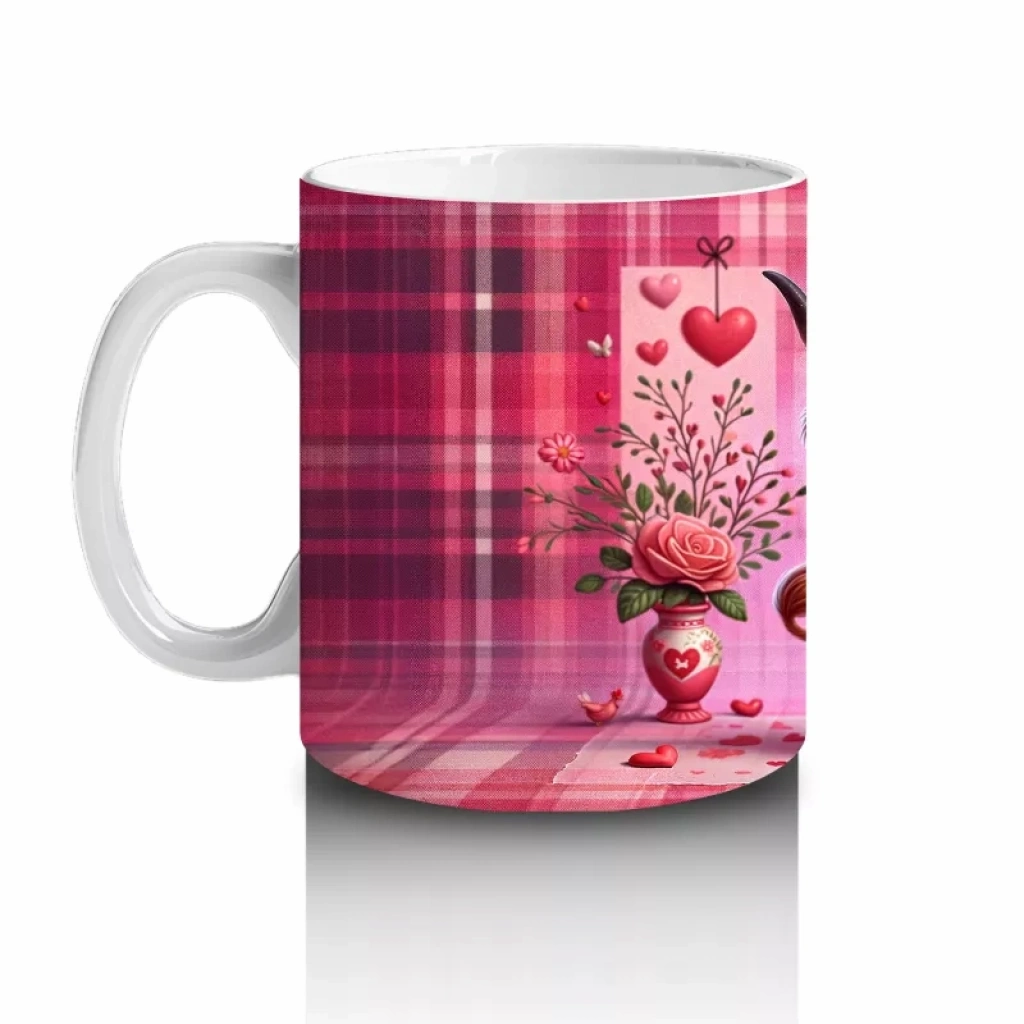 Pembe kare desen zemin üzerinde duran bu sevimli öküz figürü, eğlenceli ve alışılmadık bir görünüm sergiliyor. Mizahi ve özgün tasarımlar sevenlere özel bir kupa.