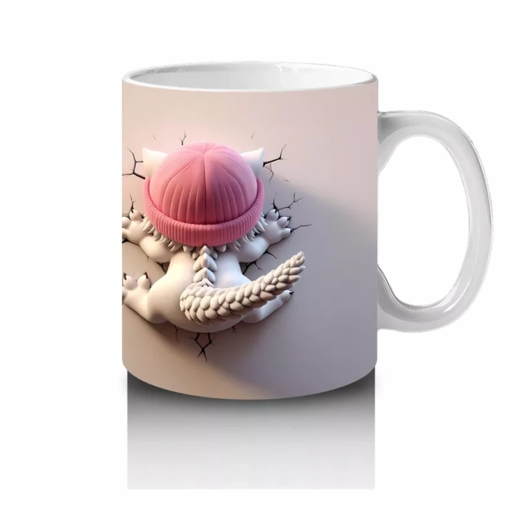 Pembe Kostümlü Kız Maskot ve Ponponlu Bere – Baskılı Kahve Kupası