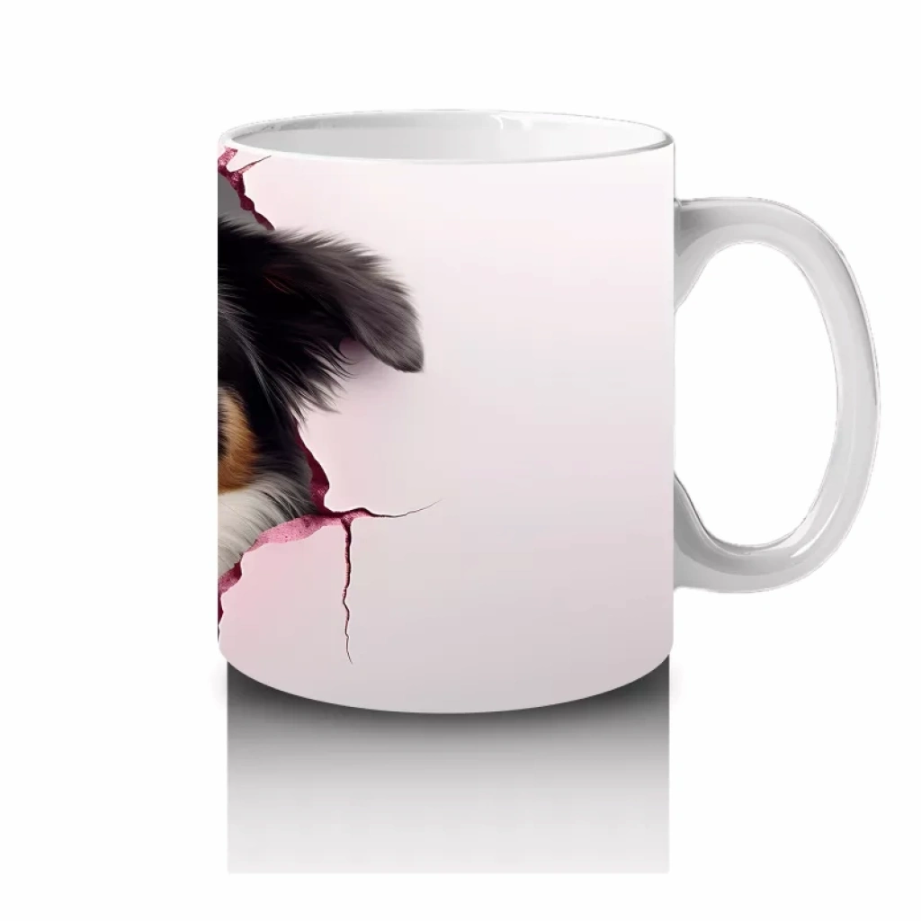 Pembe Kurdeleyle Süslenmiş Duvar Arasında Avustralyan Çoban Köpeği – Baskılı Kahve Kupası