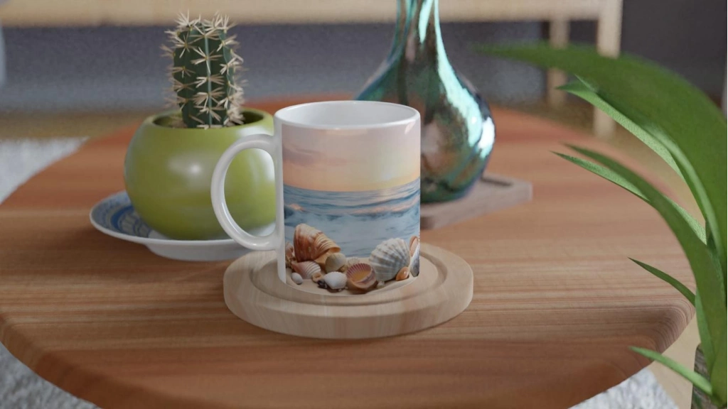 Doğayla uyumlu zarif detaylarıyla bu özel kupa bardak, romantik sahil manzaralarını evinize taşır.