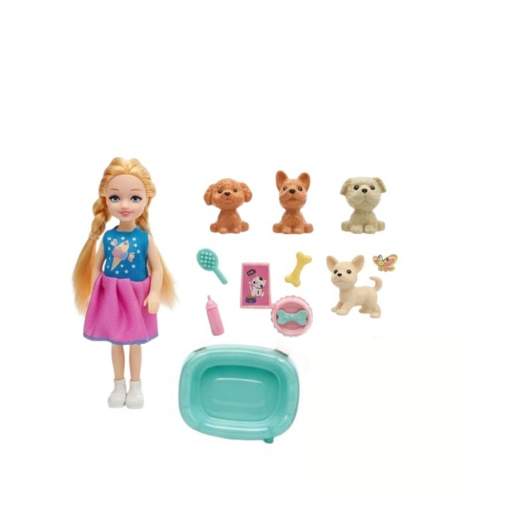 Paket içerisinde 1 adet bebek , 4 adet köpek figürü ve 6 adet bakım seti aksesuarı bulunmaktadır.
