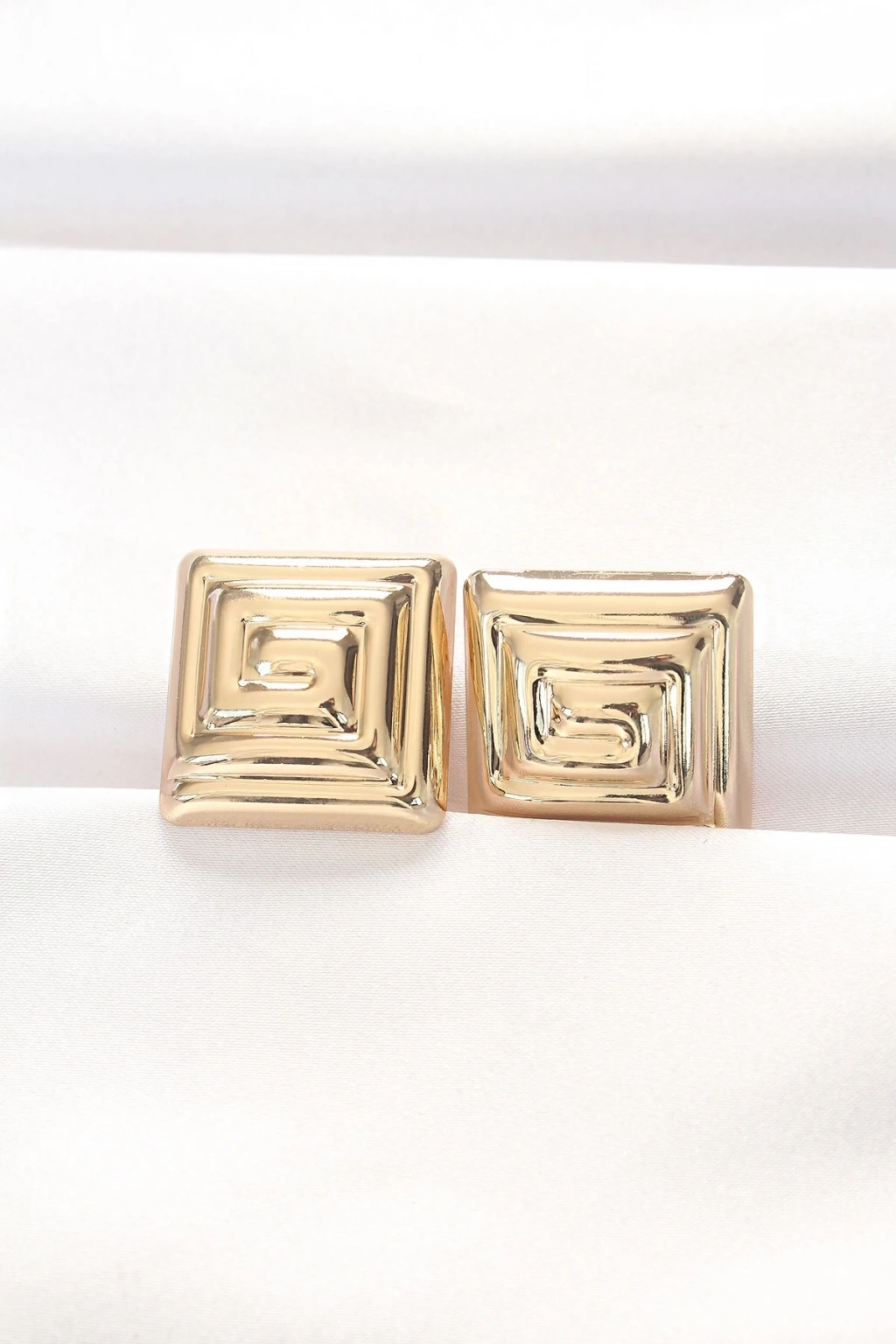 Pirinç Gold Renk Kare Form Küpe