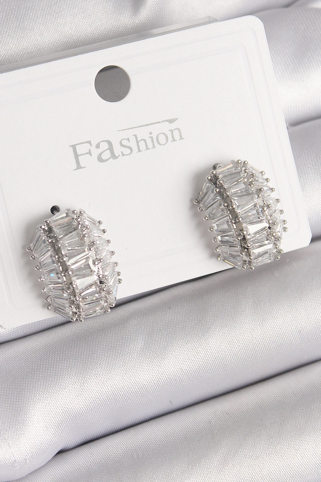 Pirinç Gümüş Renk Zirkon Taşlı Kaplumbağa Kabuğu Model Kadın Küpe