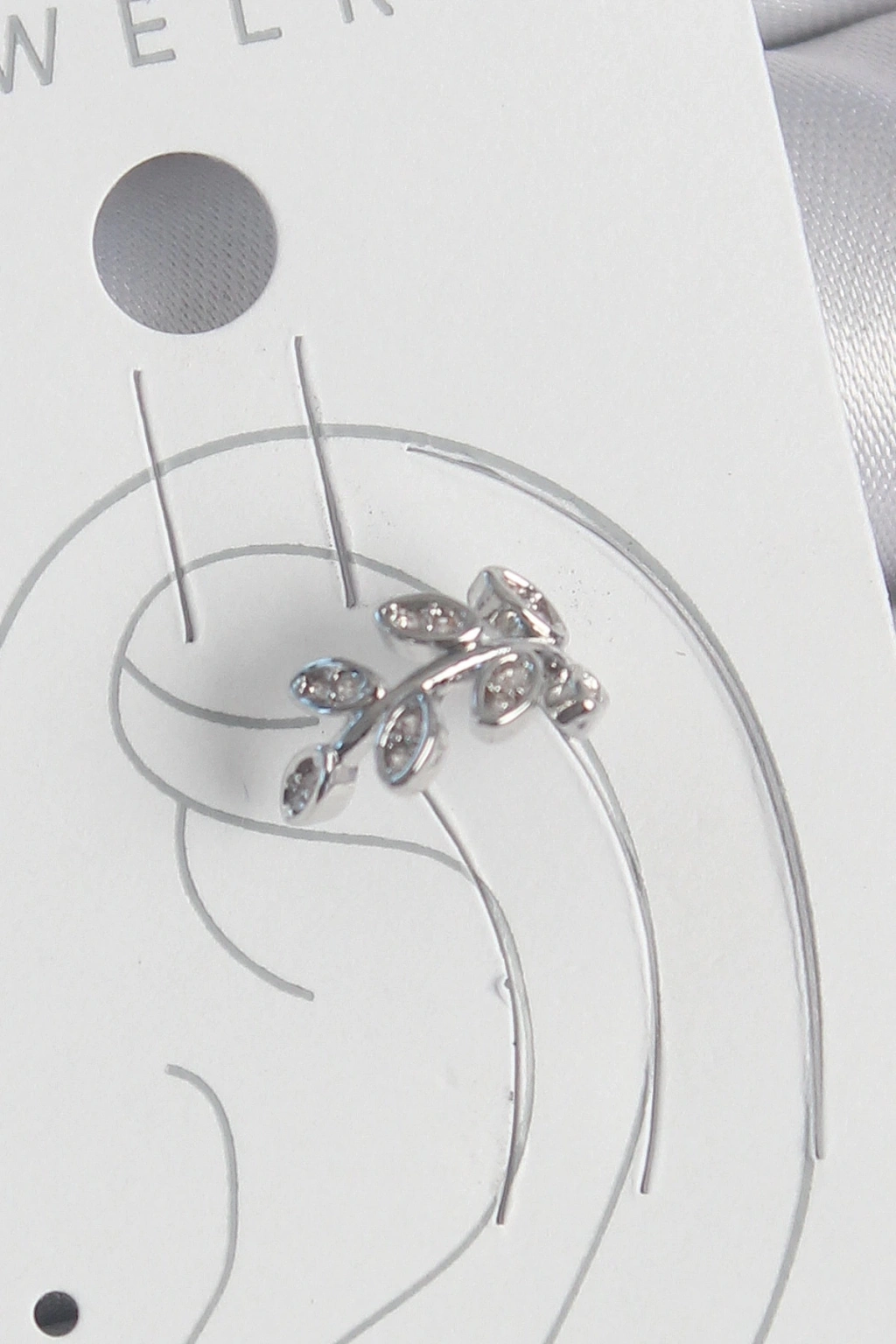 Pirinç Gümüş Renk Zirkon Taşlı Yaprak Model Kıkırdak Kadın Küpe