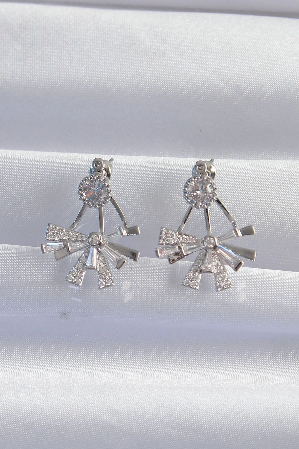 Pirinç Gümüş Renk Zirkon Taşlı Yassı Fiyonk Model Küpe