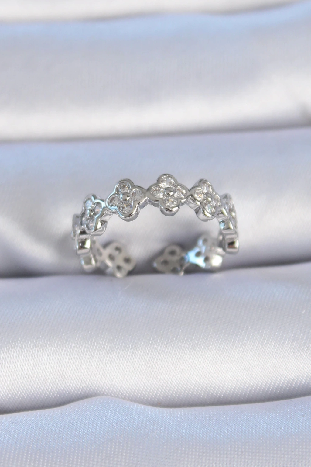 Pirinç Gümüş Renk Zirkon Taşlı Yonca Model Kadın Yüzük