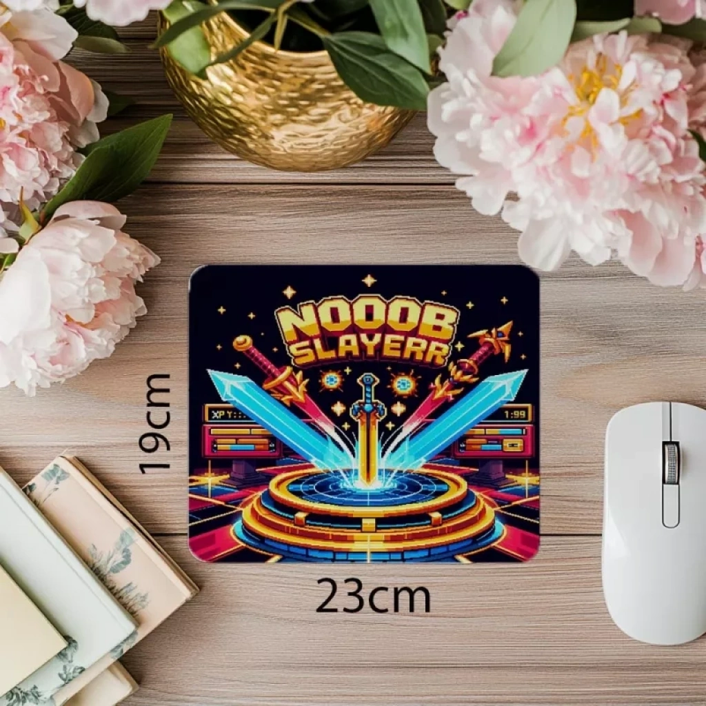 Pixel savaş alanı temalı eğlenceli mousepad ile oyun masanı canlandır! Canlı renkler ve geniş yüzeyiyle rahat kontrol ve yüksek performans sunar.