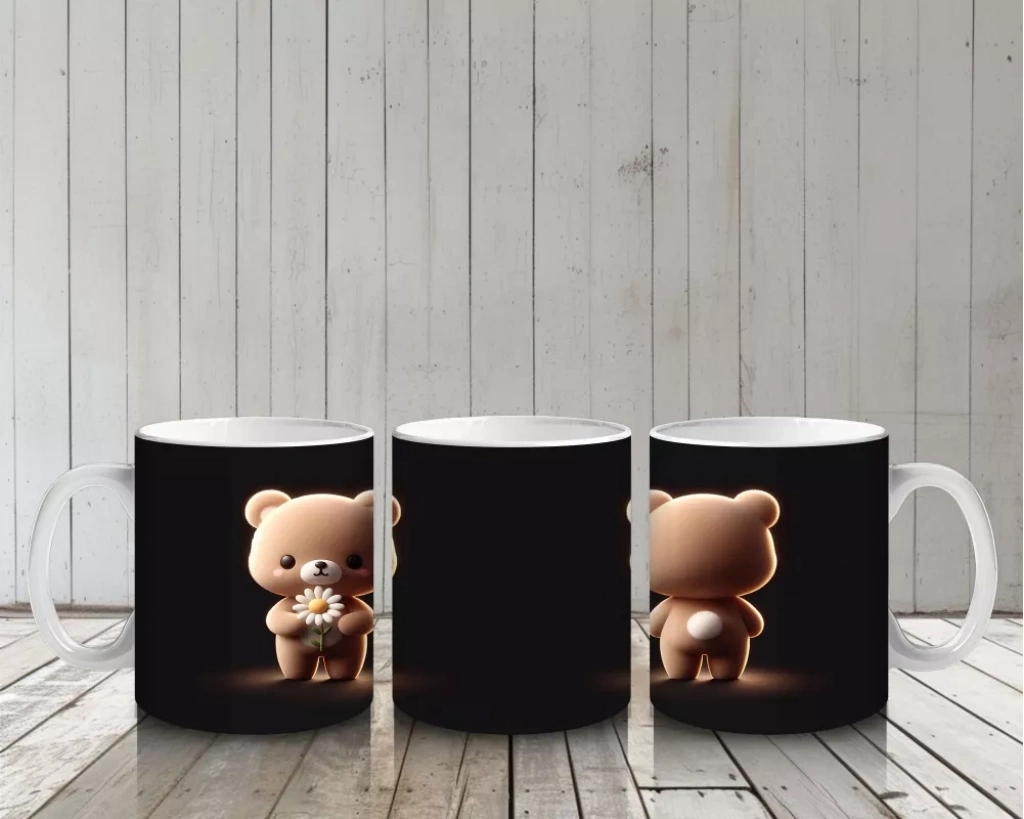 Birlikte poz veren bu tatlı ayıcık çifti, sevgi dolu tasarımıyla kalpleri ısıtıyor. Romantik ve neşeli bir kupa arayanlar için hem anlamlı hem dekoratif bir hediye alternatifi.