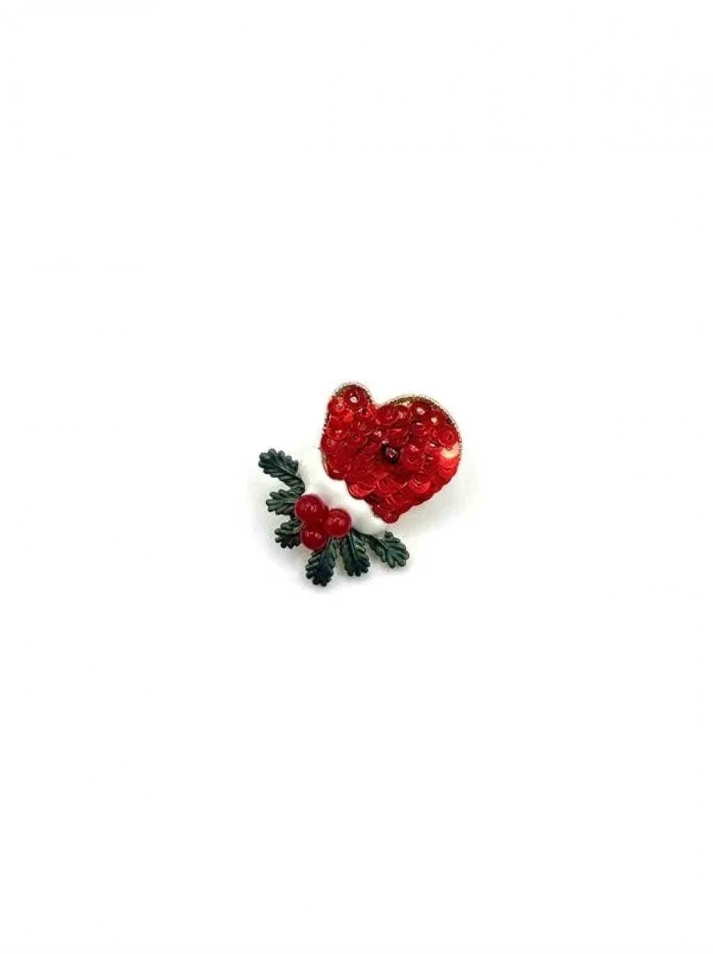 Pullu Eldiven Yılbaşı Broş - Kırmızı