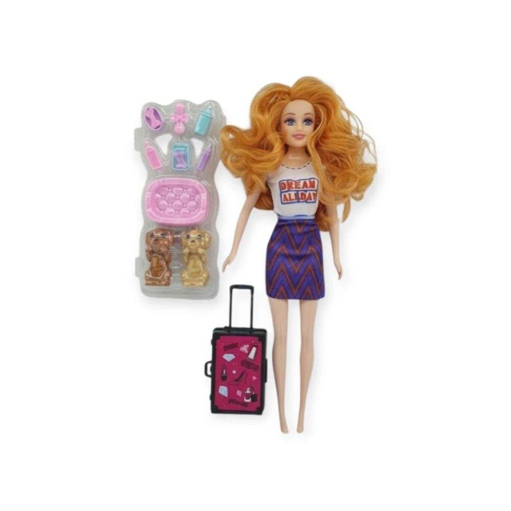 Paket içerisinde 1 adet bebek , 2 adet köpek figürü , 1 adet valiz ve 7 parça aksesuar bulunmaktadır.