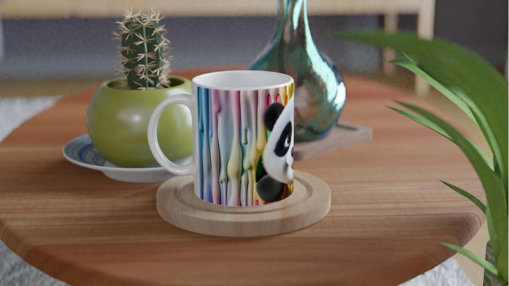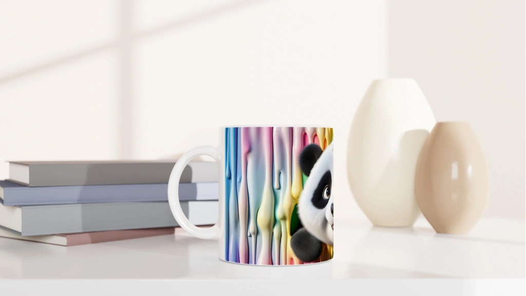 Renkli Damlaların Arasından Bakan Sevimli Panda Temalı Baskılı Kupa Bardak, göz alıcı pastel ve neon tonlardaki akışkan desenleriyle modern sanat dokunuşu taşır. Neşeli ve yaratıcı bir tarz arayanlar için mükemmel bir kupa seçeneği.