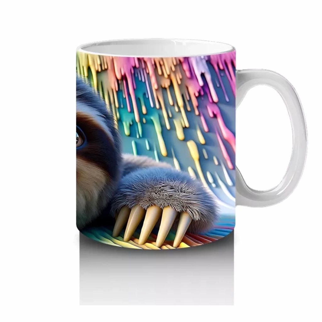 Renkli Fon Üzerinde Mutlu Tembel Hayvan – Baskılı Kahve Kupası